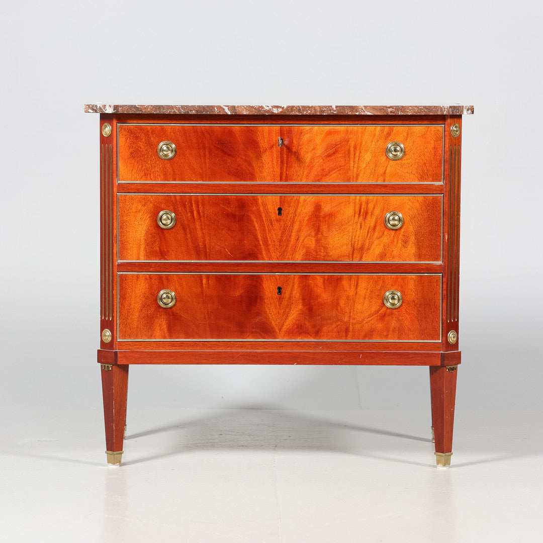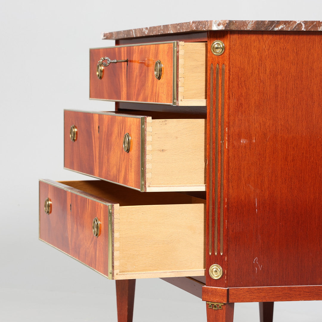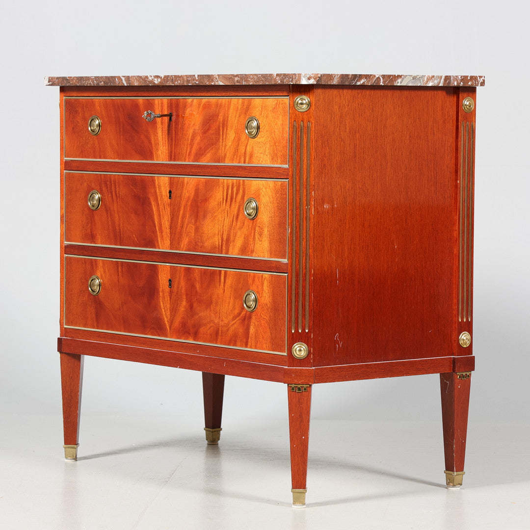 Elegant byrå i gustaviansk stil med vacker stenskiva – ett klassiskt och stilfullt inslag i hemmet. Byrån har tidstypiska detaljer och generöst med förvaring, perfekt för dig som uppskattar både funktion och form..