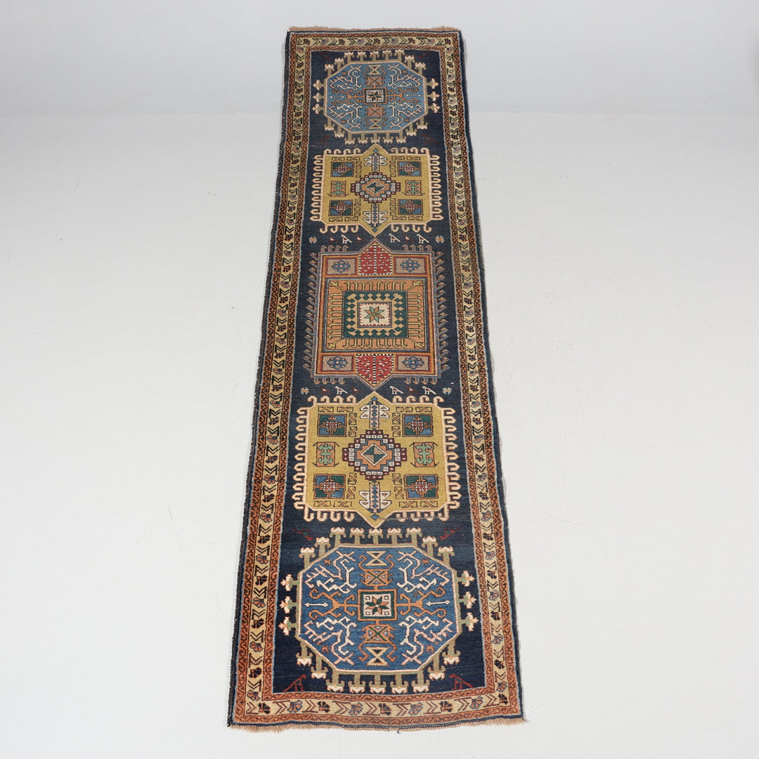 Orientalisk matta med avlång form och traditionellt mönster – passar perfekt som gångmatta eller för att rama in ett smalt utrymme med färg och karaktär. Ett vackert hantverk med klassisk stil.